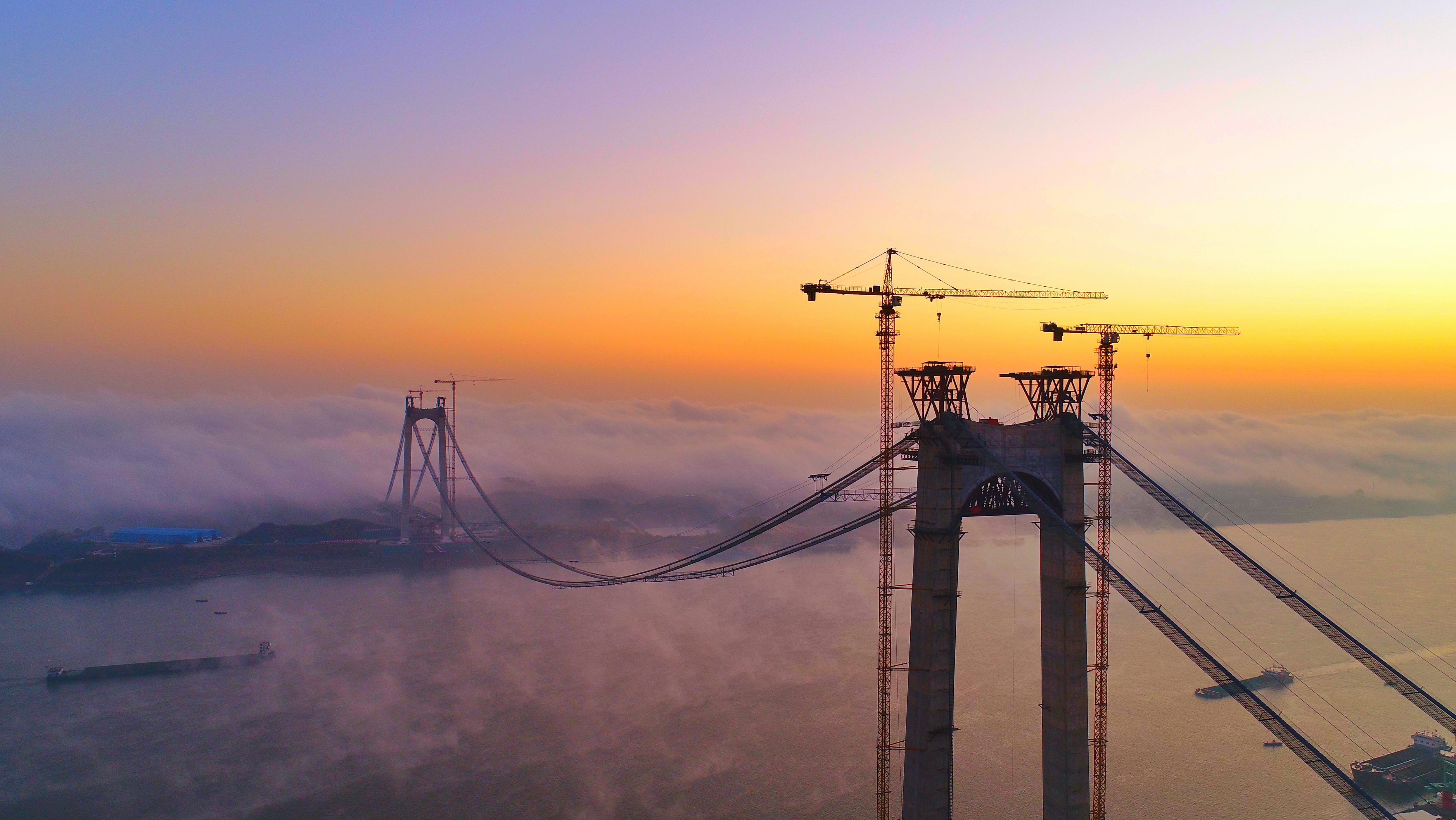 黃石棋盤洲長江公路大橋是武漢城市圈高速公路的重要組成部分,該項目起點位于陽新縣太子鎮(zhèn)樟樹灣村,順接擬建的黃咸高速公路大冶至陽新段,穿過規(guī)劃棋盤洲港區(qū)后跨越長江進入黃岡市蘄春縣境內(nèi),在韓家灣與G50滬渝高速全互通相交,終點接滬渝高速。路線全長22.237km,黃石側(cè)接線14.247km,長江大橋3.728km,黃岡側(cè)接線4.262km。本項目投資估算總金額為39.363億元,建設(shè)總工期為48個月。2014年10月,湖北路橋中標(biāo)棋盤洲長公路大橋建設(shè)工程項目,2020年6月5日,大橋?qū)崿F(xiàn)順利合龍。