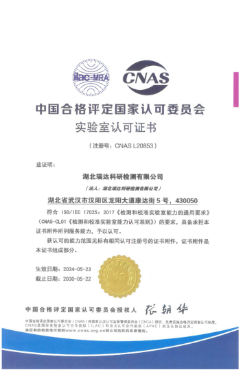 (圖:瑞達公司獲得國家實驗室認可證書)